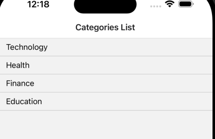 This is how our mobile app screen will look like, after consuming API for Categories: