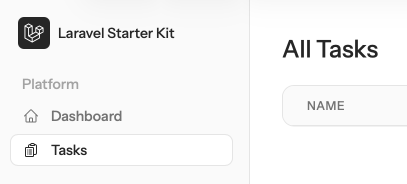 // ... <flux:sidebar.nav> <flux:sidebar.group :heading="__('Platform')" class="grid"> <flux:sidebar.item icon="home" :href="route('dashboard')" :current="request()->routeIs('dashboard')" wire:navigate> {{ __('Dashboard') }} </flux:sidebar.item> <flux:sidebar.item icon="clipboard-document-list" :href="route('tasks.index')" :current="request()->routeIs('tasks.*')" wire:navigate> {{ __('Tasks') }} </flux:sidebar.item> </flux:sidebar.group></flux:sidebar.nav> // ...