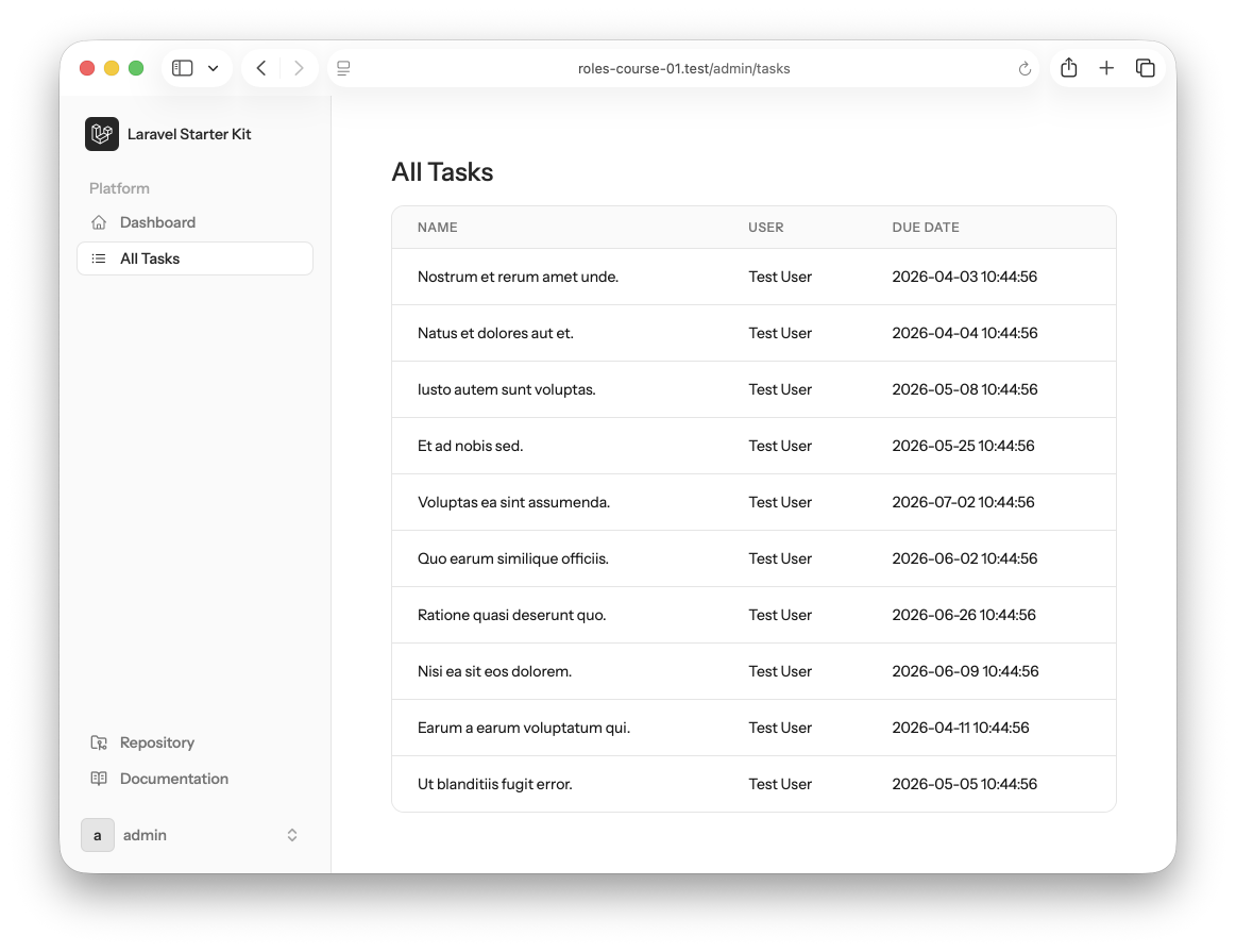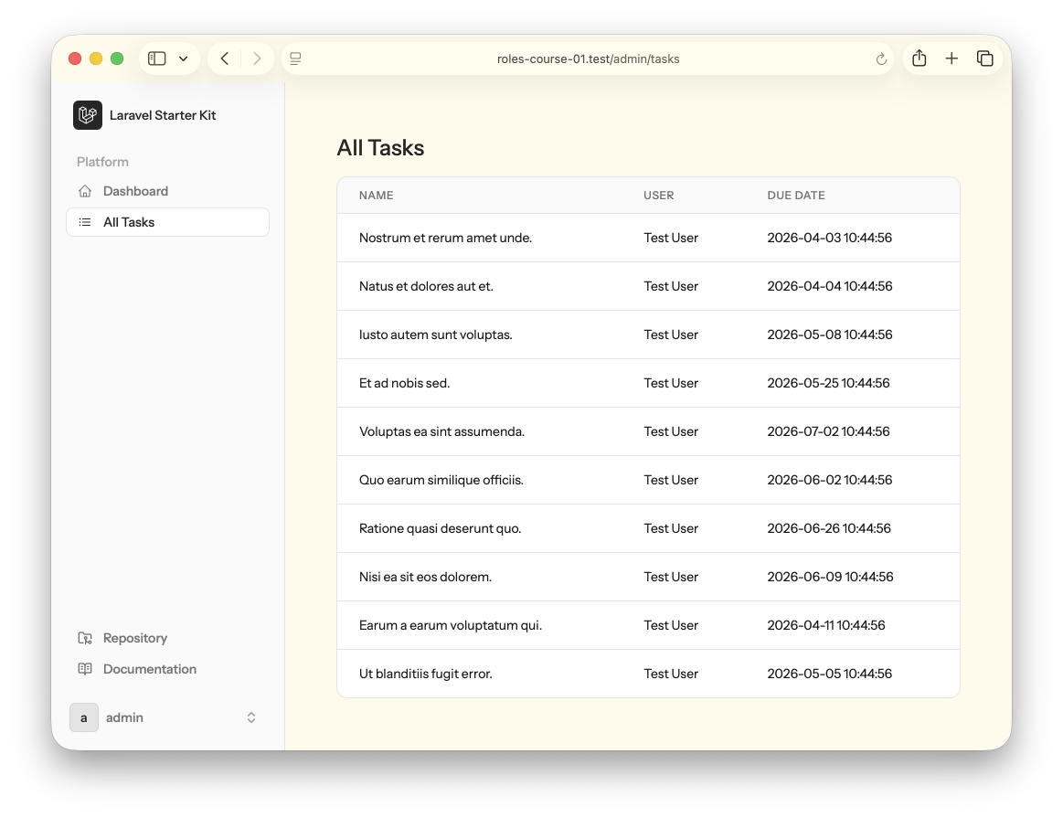 The functionality of a Laravel project may be visible to different roles in various ways. In this lesson, we will start with the most typical one: separate areas.