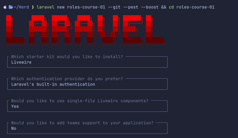 During the setup, you will be asked to choose a starter kit. Select Livewire — it gives us authentication scaffolding with server-rendered Blade views, which is exactly what we need.