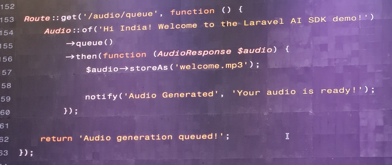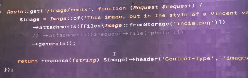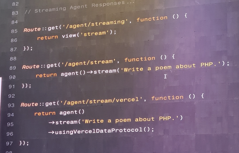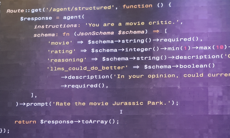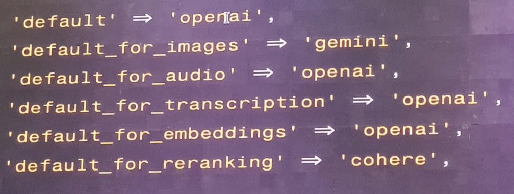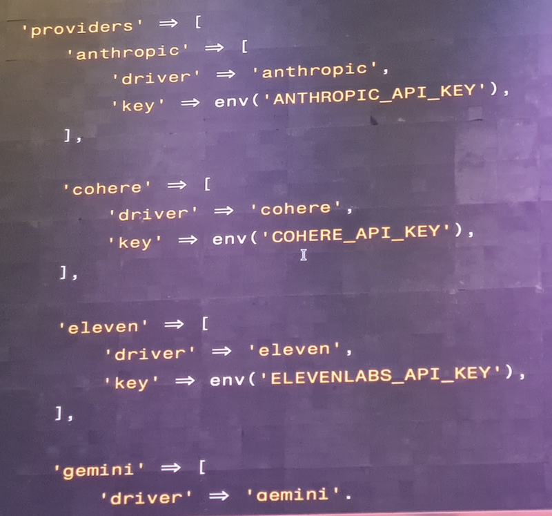 And Taylor's idea is to provide an elegant Laravel syntax and API, to make it very easy to use, no matter which AI provider you choose.