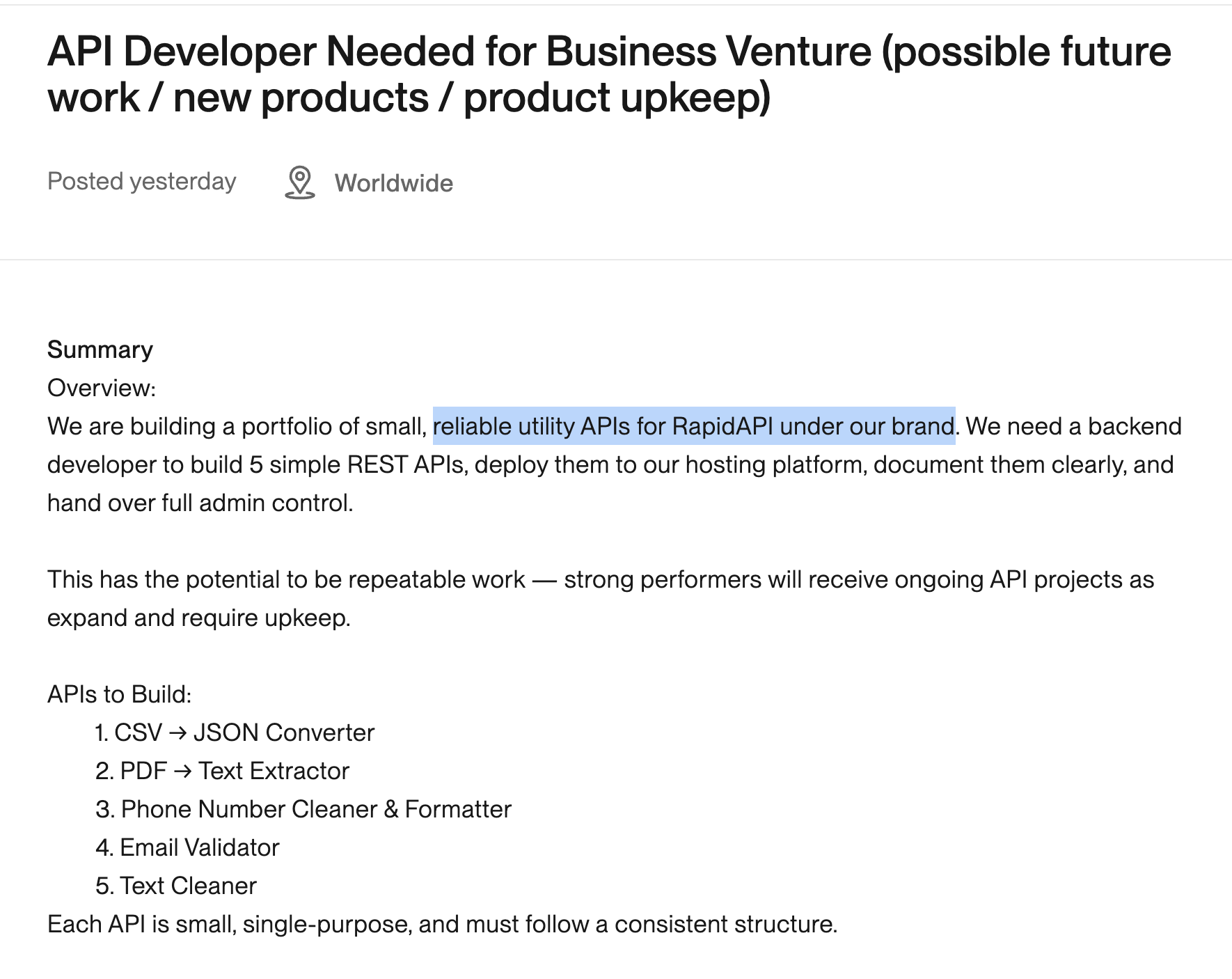 In this 24-minute video for Premium members, I'm showing how I polished a simple Laravel API to be able to deploy it to RapidAPI platform, which was a requirement of a real Upwork job.