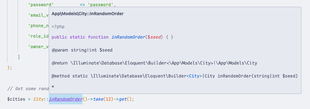 This is great for generating the DocBlocks for our code, just like we used in PHPStorm.